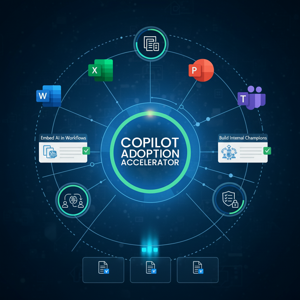 Adoption Accelerator – Workflow redesign, quick wins, and change management.