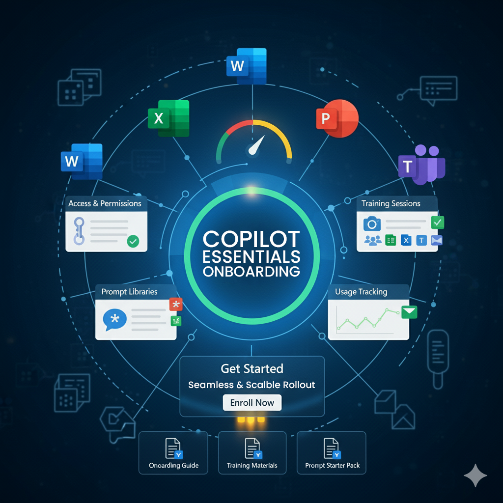 Enable your teams to start using Copilot confidently. This package focuses on activating Copilot for users and equipping them with the knowledge and tools to get started. Whether you're onboarding 10 users or 10,000, we make the process seamless and scalable.
